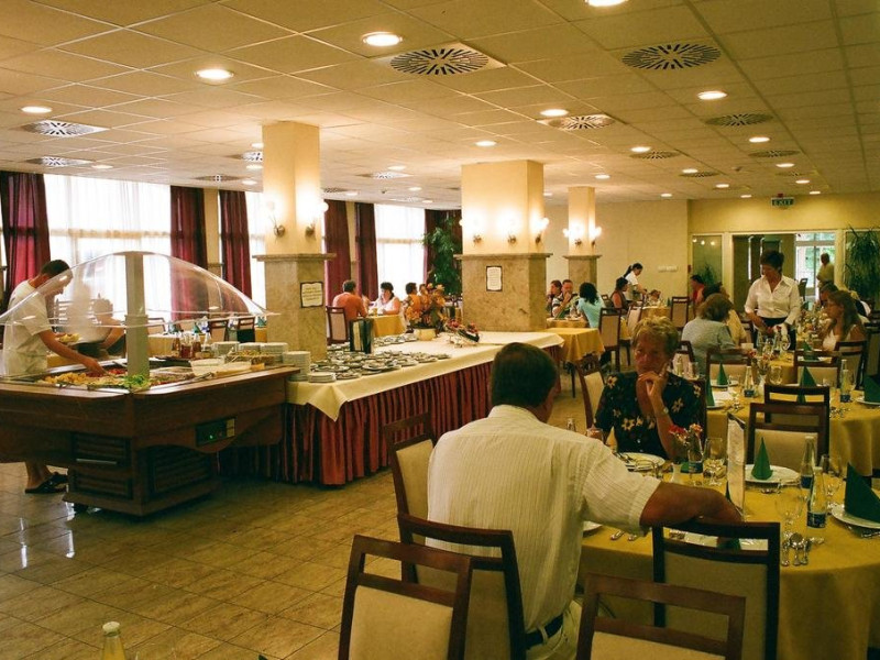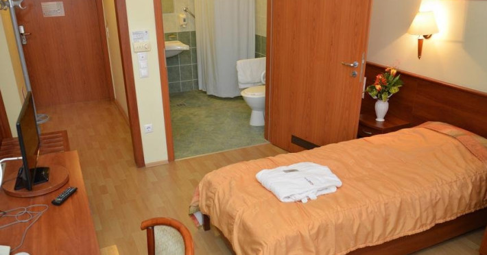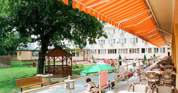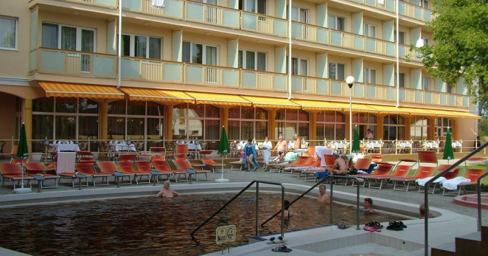Descriere HOTEL THERMAL: Hotel Thermal dispune de 117 camere, fiind unul dintre cele mai cunoscute si apreciate hoteluri din Hajduszoboszlo, inima tuturor activitatilor de tratament, wellness si agrement.Oaspetii hotelului se pot bucura de efectele apei ce contine iod si saruri. Bazandu-se pe apa termala, adecvata pentru boli reumatice, ginecologice, precum si pentru cure suplimentare pentru traumatisme si tratamente post-operatorii, se ofera mai mult de 40 de tratamente medicale. In imediata apropiere a hotelului se afla cel mai mare complex balnear din Europa. Strandul si baile termale sunt situate pe 30 de hectare, aici infiintandu-se primul Aquapark din Ungaria, care a fost urmat in anul 2010 de inaugurarea centrului spa acoperit, Aqua Palace, cu o intindere de 15000 mp si o atmosfera de exceptie, asteptand toti membrii familiei cu o gama diversificata de servicii, valabile pe tot parcursul anului, dispunand de bai tematice, bazine pentru copii si bebelusi, tobogane pentru copii.