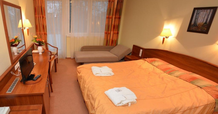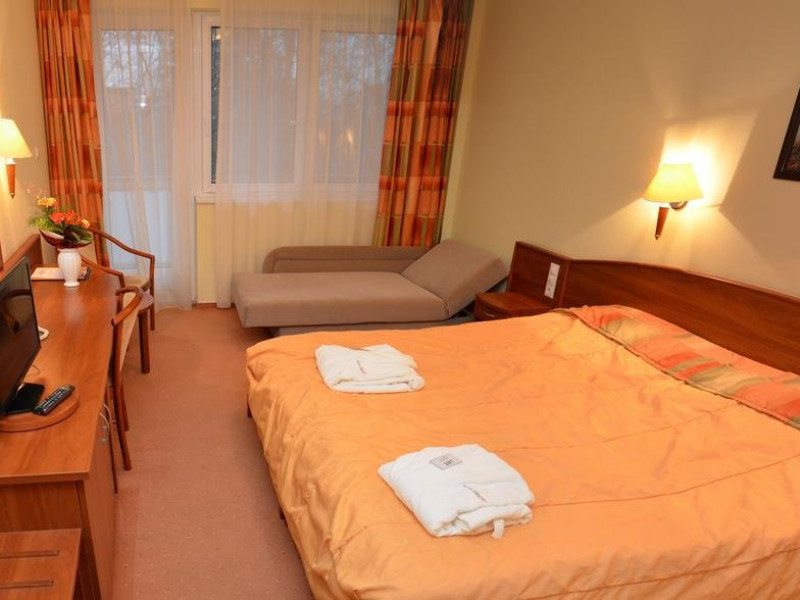Tratamente balneo-fizioterapeutice: Centrul de tratamente balneo-fizioterapeutice din hotel pune la dispozitia clientilor urmatoarele servicii de sanatate si wellness: impachetari cu namol, elongatie subacvala, kinetoterapie, inhalatii, iontoforeza, curenti interferentiali, ultrasunete, bal galvanice, curenti diadinamici, terapie Bemer, stimulare electrica, terapie laser, IBR System (diagnoza si terapie), acupunctura, masaj de relaxare, masajul talpilor, masaj thailandez, masaj limfatic, bai cu uleiuri aromatice, masaj cu ulei aromatic, solar, sauna, infra-sauna, cabina cu aburi, camera de sare, pachete de detoxifiere.
