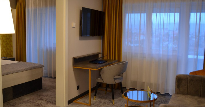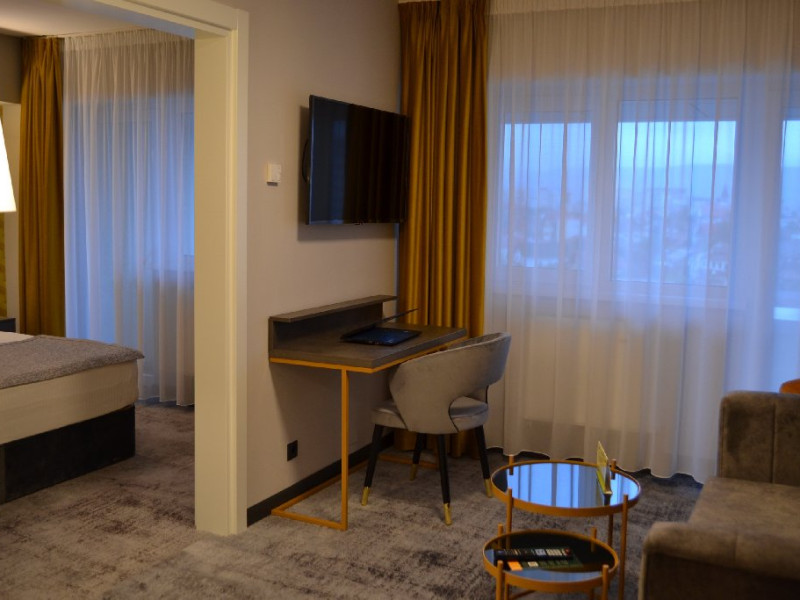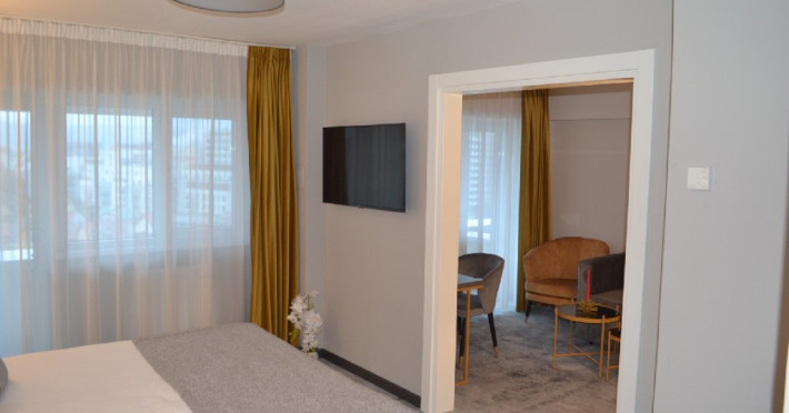DOTARI CAMERE: Camerele sunt disponibile incepand cu ora 14:00 si se elibereaza pana la ora 12:00. Camera dubla, formata din 2 paturi twin, baie cu dus, uscator de par, internet, TV,AC,minibar, telefon. Apartament, format din living cu canapea extensibila si dormtior cu pat matrimonial, baie cu dus, uscator de par, internet, TV,AC,minibar, telefon.