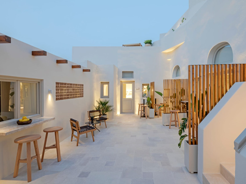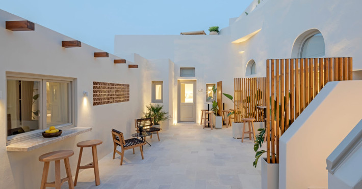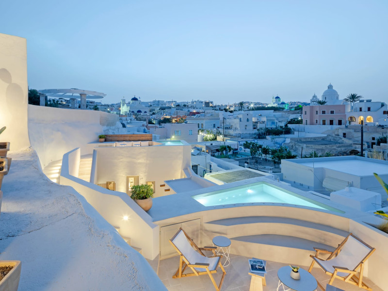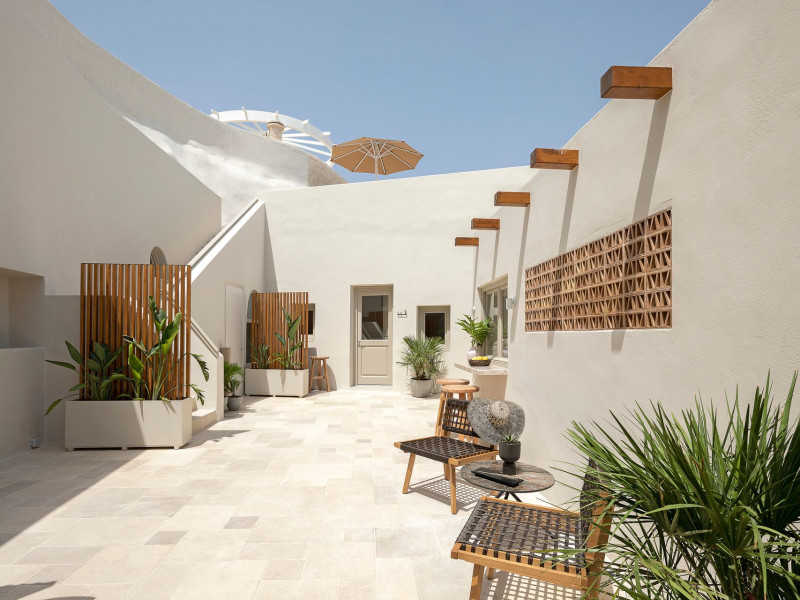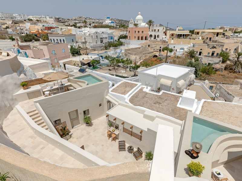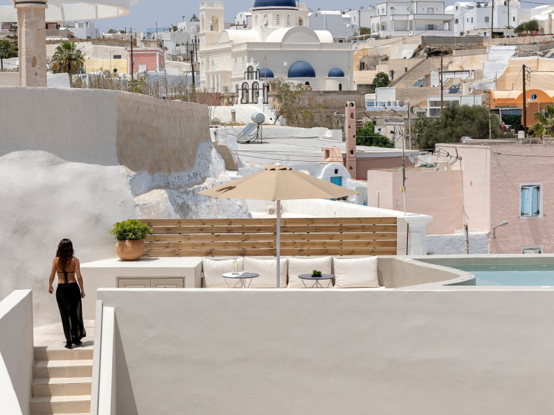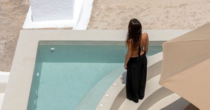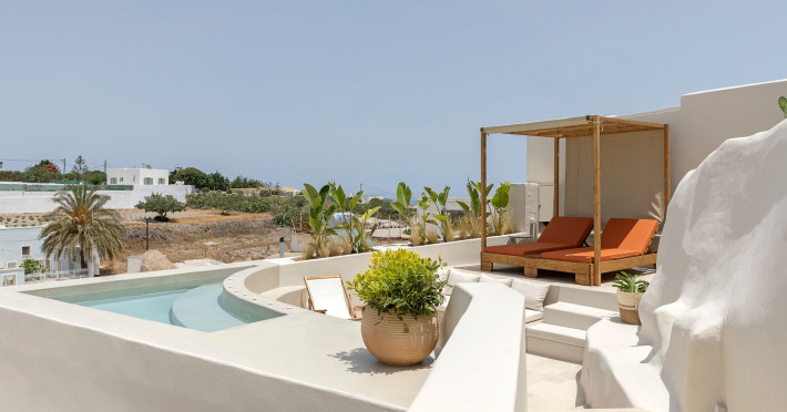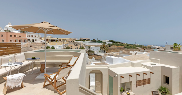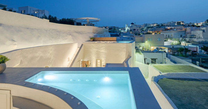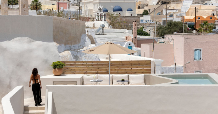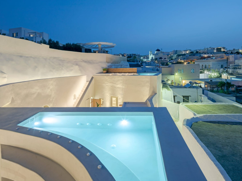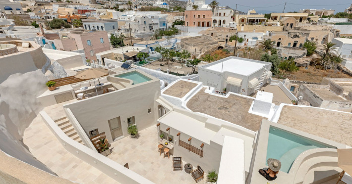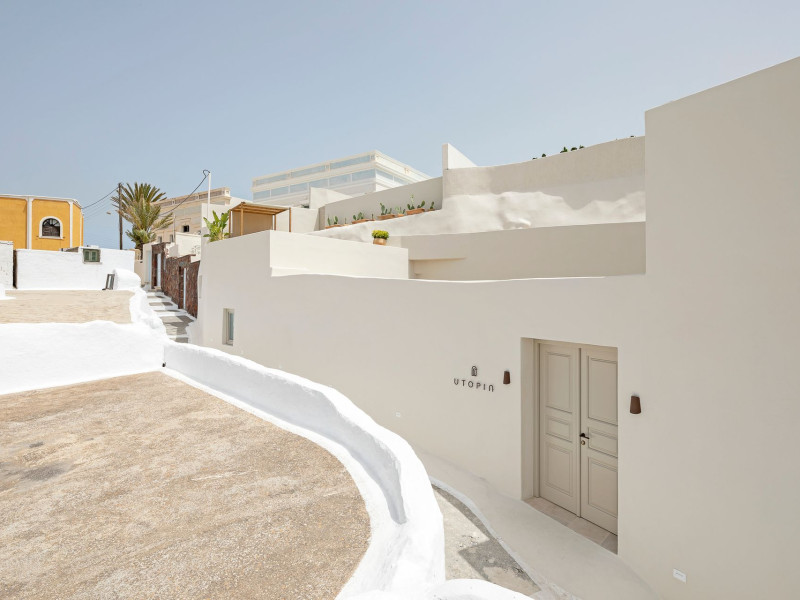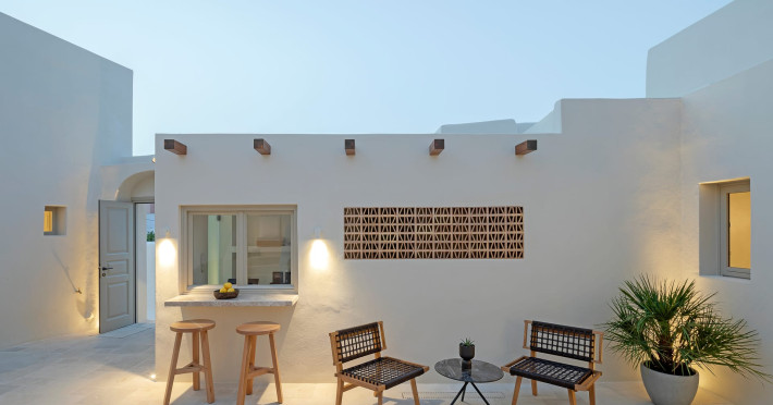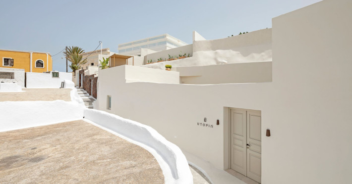 This astonishing residential complex has four different suites. Nestled among white-washed cave houses and churches, it enjoys the traditional village of Karterados from its private terraces. Originally built in the late 18th century, it served as a wine press and residence. The old “canaves” have been transformed into spacious suites retaining the Cycladic authenticity.Here the guest will encounter a place of calmness, originality, spirituality, and luxury all in harmony with natural preexisting forms dug into the volcanic soil. Utopia Villas offer a unique hospitality experience, influenced by the island of Santorini with beautiful touches of Cycladic authenticity. Here everything is about ease and our guests only have to slow down and embrace happiness affected by the euphoric vibe of a true utopian setting. This private oasis of wellness and natural beauty, unpretentious and mystical, will offer you a memorable experience.