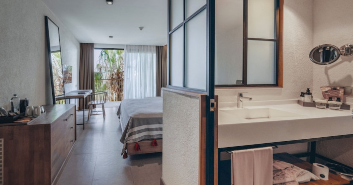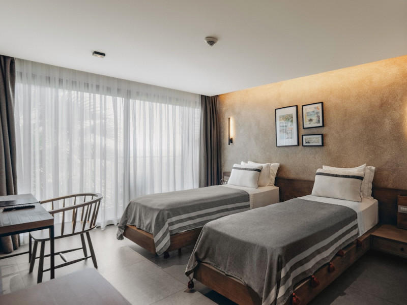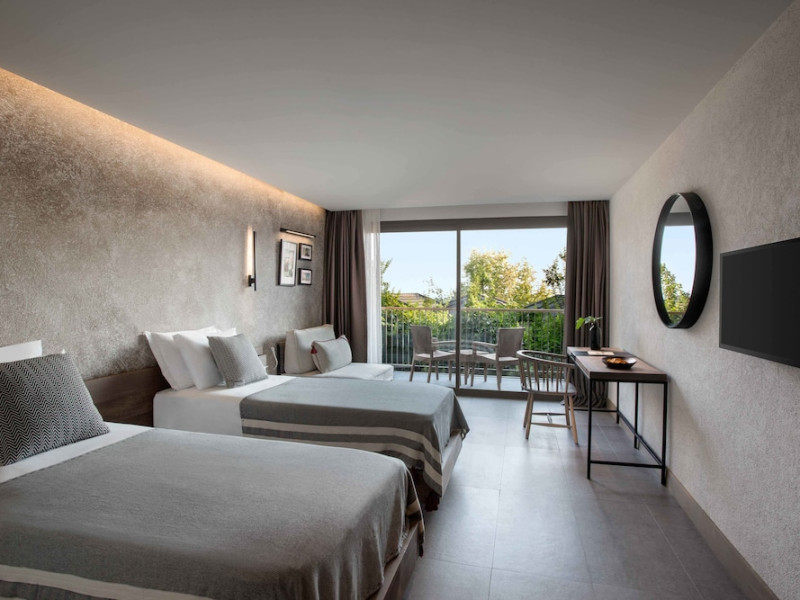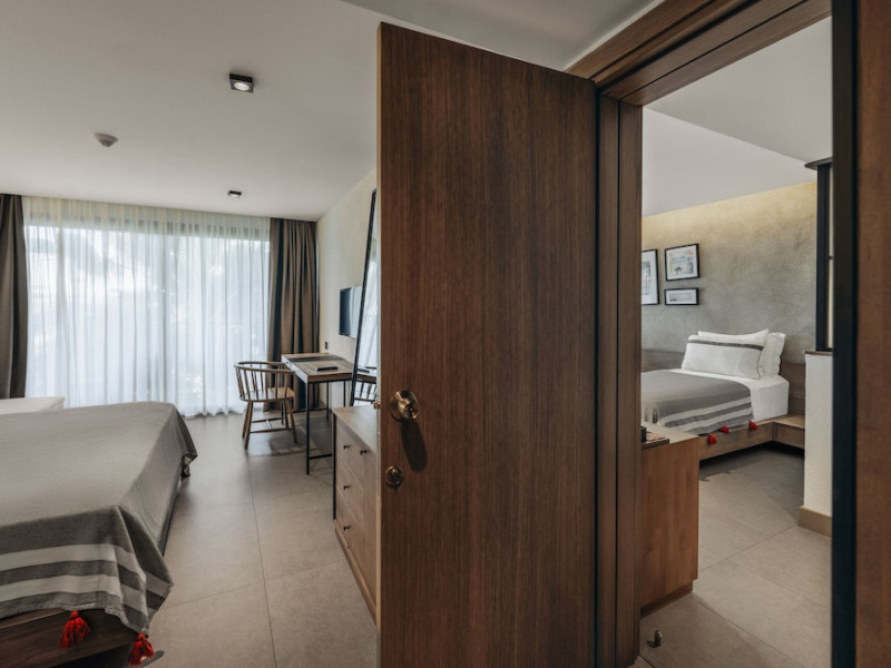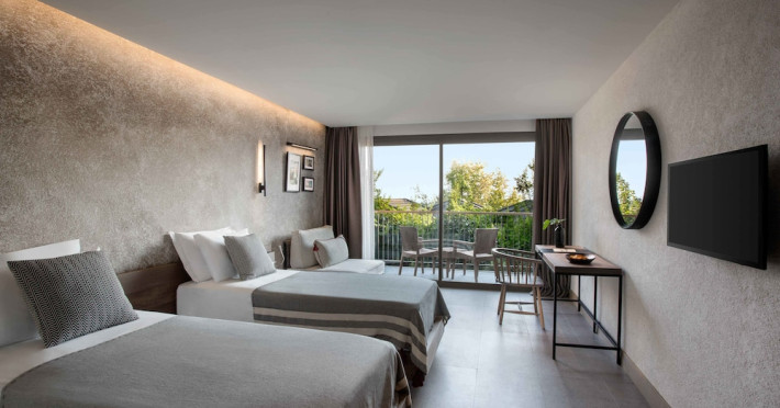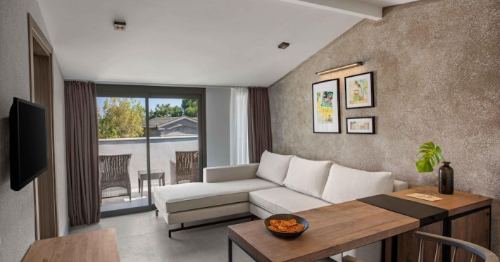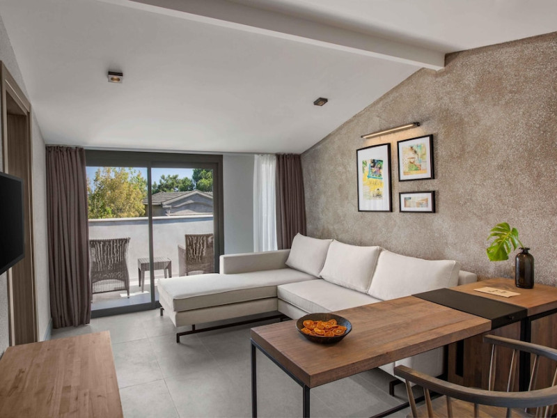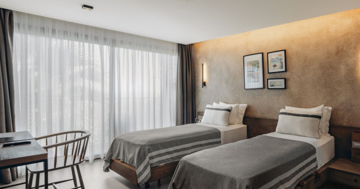 Cazare Pentru cazare avem disponibile 351 locuri de cazare distribuite in 163 de camere duble (total 326 locuri), 3 suite (total 9 locuri) si 8 apartamente (total 16 locuri) . Camerele au 2 paturi individuale, televizor, telefon, grup sanitar propriu si minibar - la cerere in functie de disponibilitate. Apartamentele sunt formate din antreu, living, dormitor i baie. Au pat matrimonial in dormitor i canapea extensibila in living. Sunt dotate cu 2 televizoare.