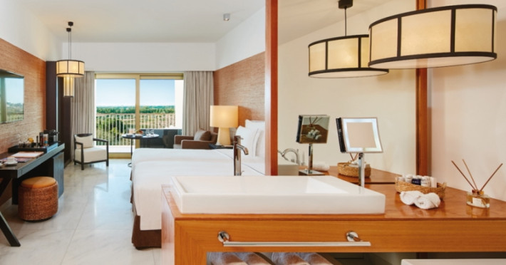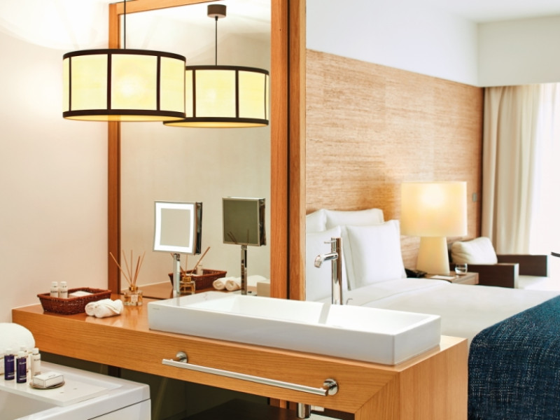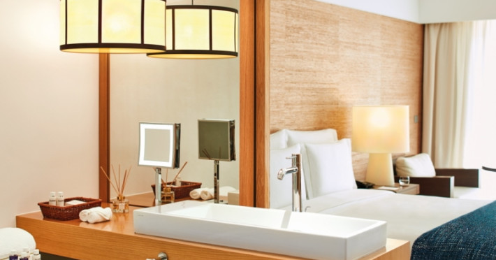 The luxurious rooms, with generous spaces, offer the option for in-room 24-hour gourmet dining. Some of the common fixtures and features include pillow menu, evening bed turn down service, robes and slippers, wireless internet, iHome, LCD television with video channels and video on-demand. Other amenities include direct dial telephone, iron and ironing board, safe with space for laptop, in-mirror television in the bathroom, hairdryer, hotel toiletries, air conditioning, exclusive private mini-bar, and balconies with panoramic views.