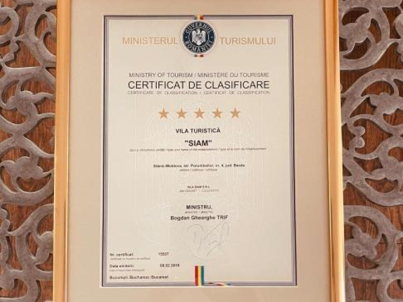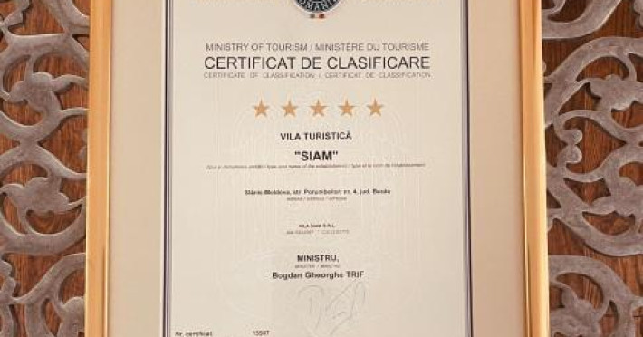 Sophisticated but very comfortable hotel Vila Siam is located in Slanic-Moldova. This hotel is located in the city center. Before going to bed, you can take a walk and enjoy the main landmarks of the city.Sophisticated but very comfortable hotel Vila Siam is located in Slanic-Moldova. This hotel is located in the city center. Before going to bed, you can take a walk and enjoy the main landmarks of the city.Taste the local cuisine and have a rest in the restaurant. Free Wi-Fi on the territory will help you to stay on-line. If you travel by car, theres a free parking zone. Guests who love doing sports will be able to enjoy a fitness center.For winter sports fans, the following services are available: a skiing area. The staff of the hotel will order a transfer for you. Accessible for guests with disabilities: the elevator helps them to go to the highest floors. At the guests disposal, theres also private check-in and check-out, press, a safe-deposit box and a concierge.The staff of the hotel speaks English.Taste the local cuisine and have a rest in the restaurant. Free Wi-Fi on the territory will help you to stay on-line. If you travel by car, theres a free parking zone. Guests who love doing sports will be able to enjoy a fitness center.For winter sports fans, the following services are available: a skiing area. The staff of the hotel will order a transfer for you. Accessible for guests with disabilities: the elevator helps them to go to the highest floors. At the guests disposal, theres also private check-in and check-out, press, a safe-deposit box and a concierge.The staff of the hotel speaks English.Please note that breakfast is served each morning, but that the restaurant is closed Mondays and Tuesdays.