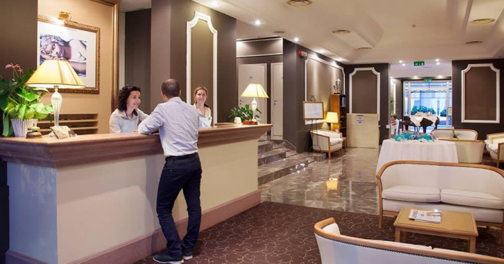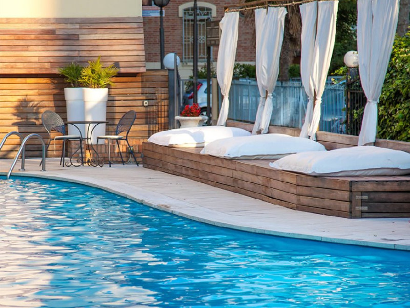 Hotelul se afla intr-o cladire art nouveau construita la sfarsitul secolului al 19-lea si este situat intr-o zona exclusivista in Rimini Marina Centro.