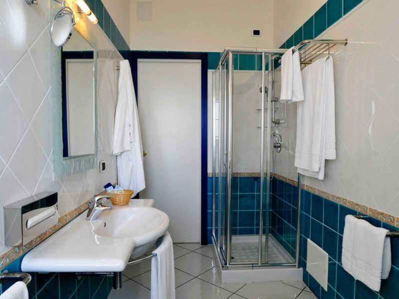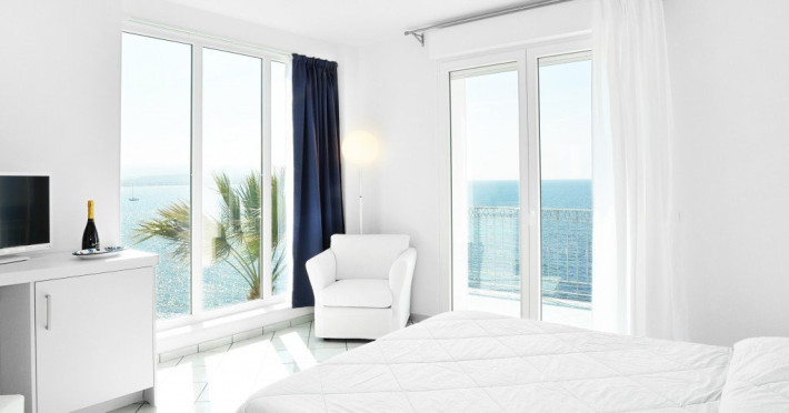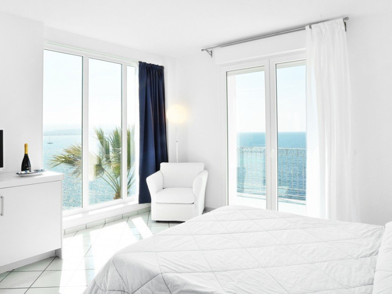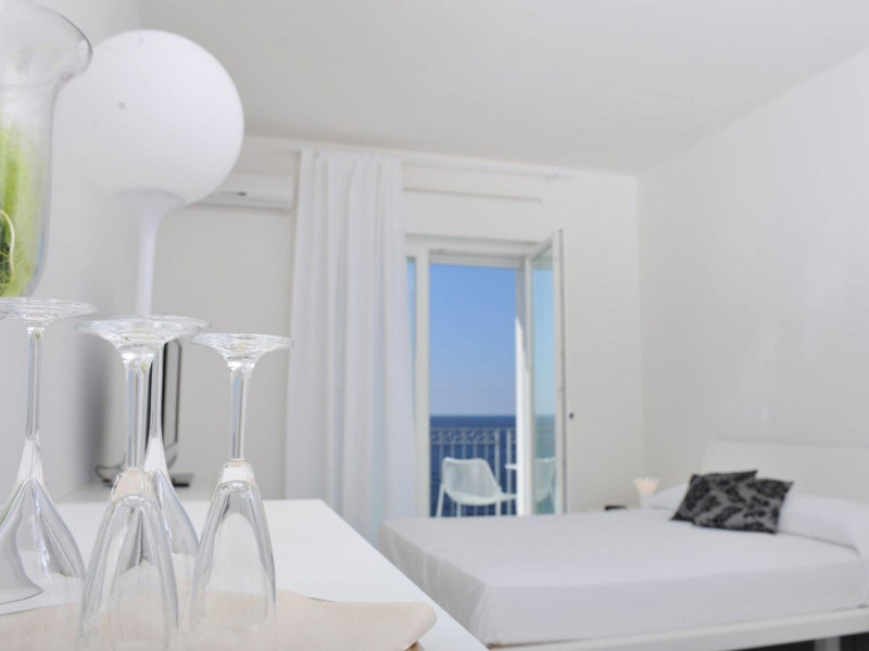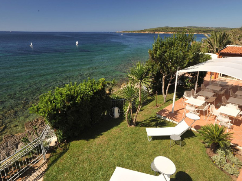 Hotelul dispune si de o frumoasa piscina in aer liber, inconjurata de sezlonguri si umbrele, unde oaspetii se pot relaxa si se pot bucura de soare, admirand vederile impresionante ale marii. Exista, de asemenea, o zona de gradina fermecatoare, unde oaspetii se pot plimba si se pot bucura de frumusetea naturala a peisajului inconjurator.