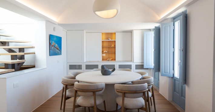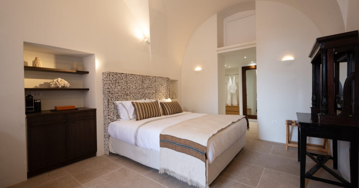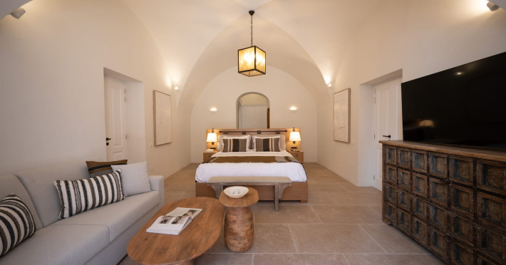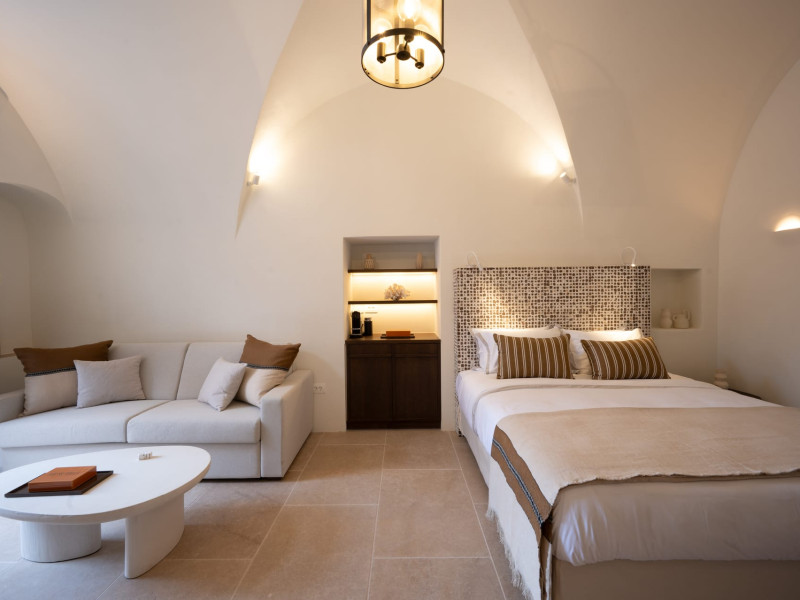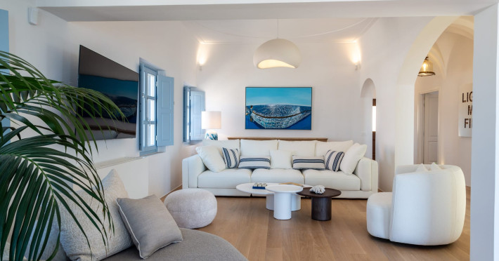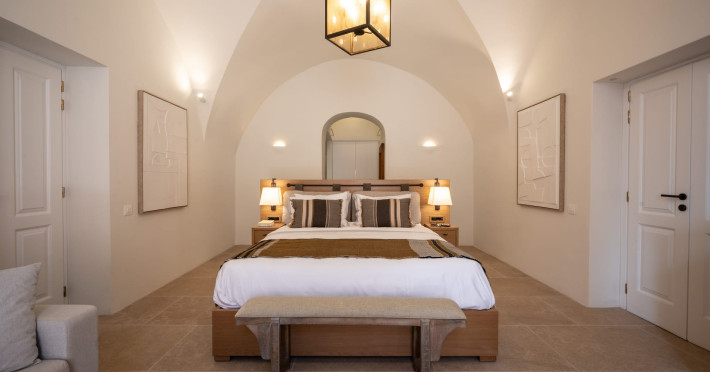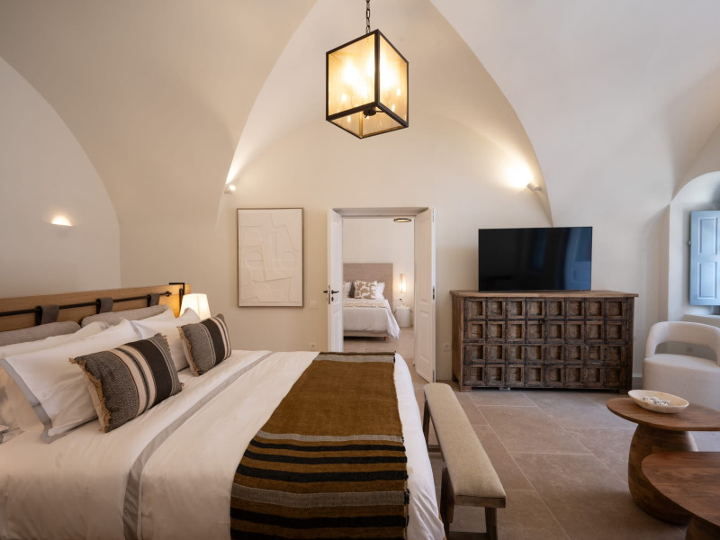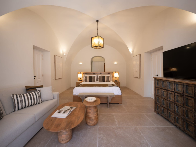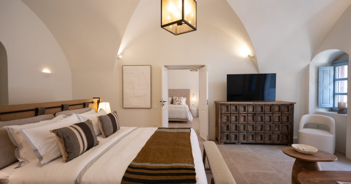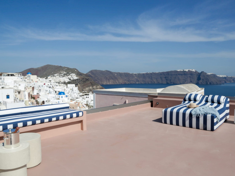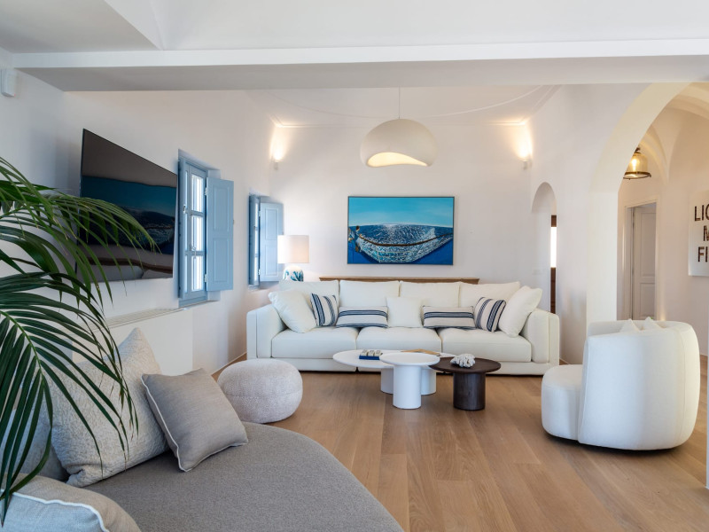 The propertyA Historic MansionBestowed with the distinction of a “cultural heritage building,” Villa Oro stands as a stunning example of a traditional 'captain house', where timeless elegance meets modern refinement. Its ornate facades, grand high cross-vaulted ceilings, and meticulously restored details pay tribute to Santorini’s rich maritime history and the legacy of the island’s esteemed shipowners / captains.Every corner of Villa Oro has been meticulously restored to offer modern luxury while preserving its authentic character. Exquisite Layout & Thoughtful DesignGround Floor – Private & Spacious Retreats* Three extra-large en-suite bedrooms, each with its own independent entry for ultimate privacy* Each room includes a king size (1.80m wide) bed and a super comfortable convertible double sofa bed, ideal for extra guests and Rainfall Showers & High-Pressure Showerheads* Thoughtfully equipped with Nespresso machines, milk frothers, kettles, electric stoves, mini bars, and all necessary cookware (pots, pans, cutlery, glasses, wine opener, plates)* Interconnected by double doors, ensuring both excellent soundproofing and the flexibility to move between rooms if needed First Floor – Elegant Common Spaces & Private Suites* Two elegantly appointed en-suite bedrooms—one featuring a luxurious 1.80-meter-wide bed, the other a comfortable 1.60-meter-wide bed—each with spa-style bathrooms fitted with rainfall showers and high-pressure showerheads.* A stylish guest WC for added convenience* A spacious living room, ideal for relaxing while taking in breathtaking views of Oia, the iconic blue domes, and the shimmering Aegean Sea.* Dining area and fully equipped kitchen, complemented by a pantry for extra storage Rooftop – The Ultimate Santorini Experience* The highest rooftop in Oia, offering breathtaking, uninterrupted panoramic views of the entire island* A large swimming pool, perfect for cooling off while admiring the views* A perfect setup for suntanning and sunset cocktails, with extra-large comfortable sunbeds, a lounge couch, creating an idyllic space for relaxation or entertaining* A mini bar for convenience*An optional dining table for a private rooftop dinner under the stars Villa Oro’s carefully designed layout ensures privacy, comfort, and seamless indoor-outdoor living, making it the perfect choice for an unforgettable stay in Santorini.Discover the magic of Santorini in every season—our doors are open year-round, and we’re always ready to welcome you. License number: 1369463