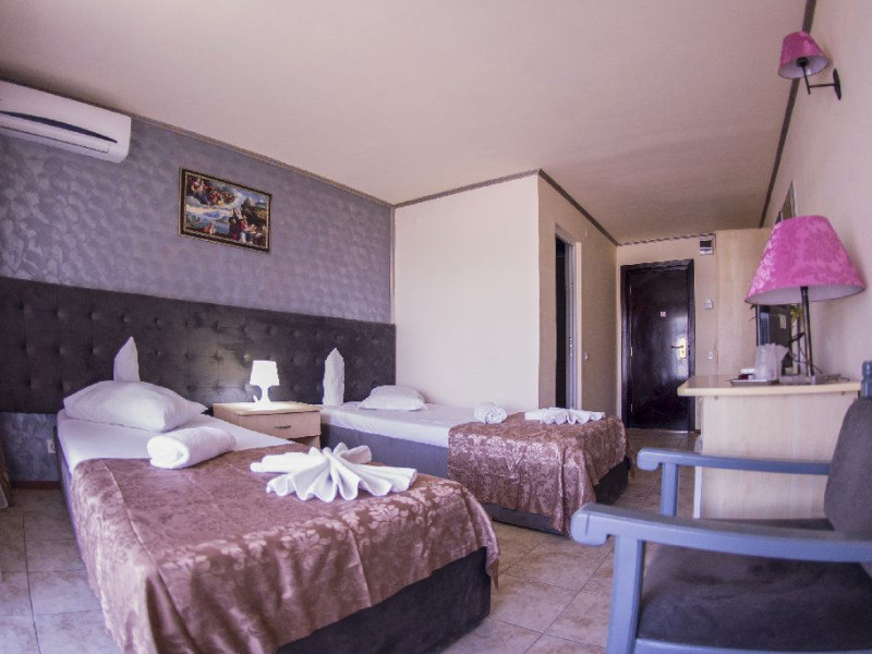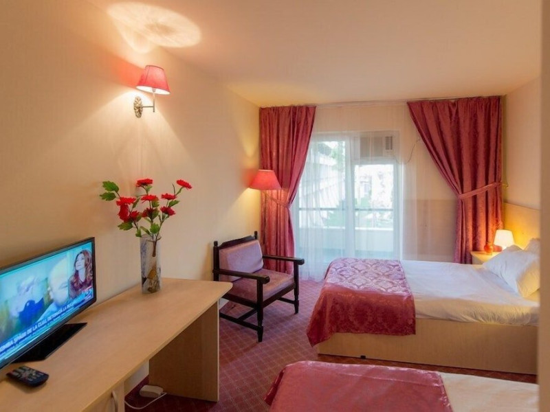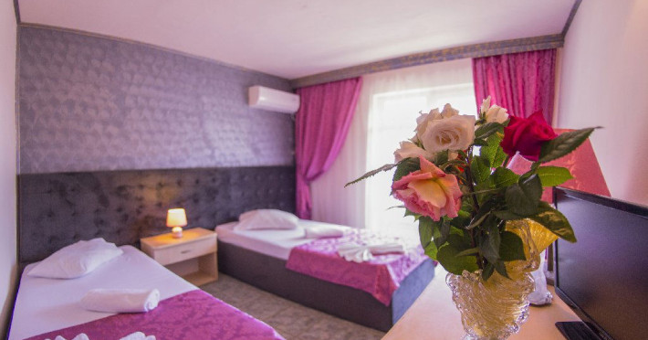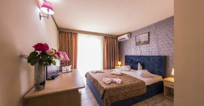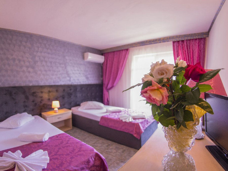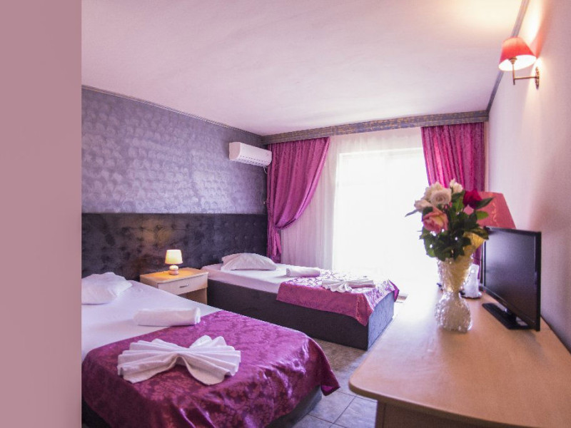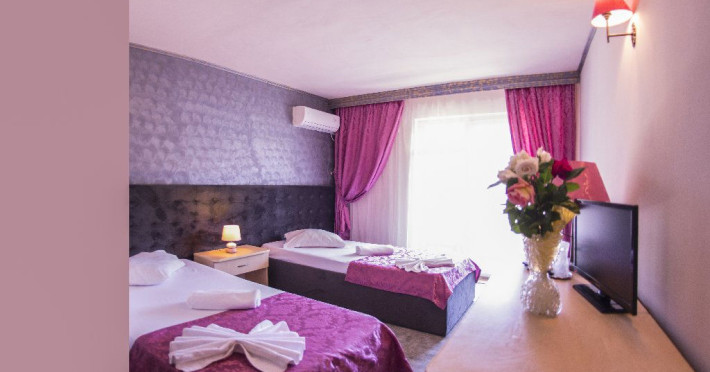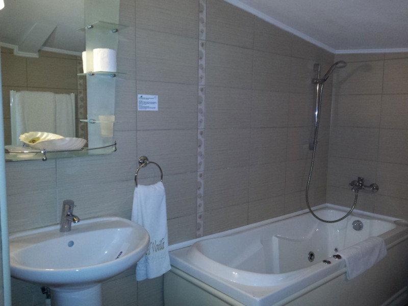 Hotelul Voila este pozitionat in nordul statiunii Mamaia, pe partea Lacului Sutghiol, la 100 m de plaja. Facilitati hotel: 200 de camere, receptie non-stop, restaurant, bar, terasa, gradina, aer conditionat, camera de bagaje, sala de conferinte (cost suplimentar), business centre (cost suplimentar), fax/copiator (cost suplimentar), loc de joaca pentru copii, zona pentru fumatori, camere pentru nefumatori, serviciu transfer aeroport (cost suplimentar), Wi-Fi, parcare gratuita (in limita locurilor disponibile). Facilitati camere: aer conditionat, cablu TV, baie proprie cu dus, minibar, telefon, balcon.