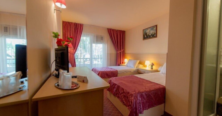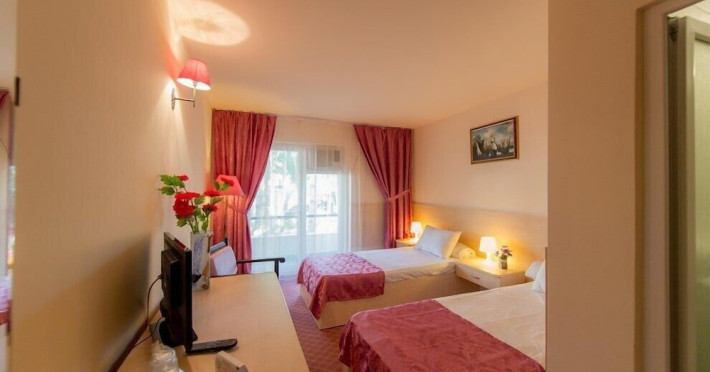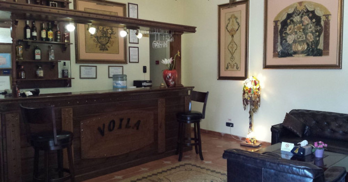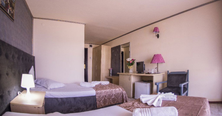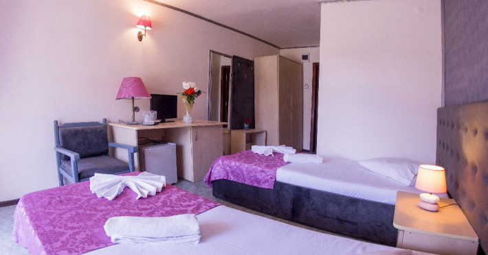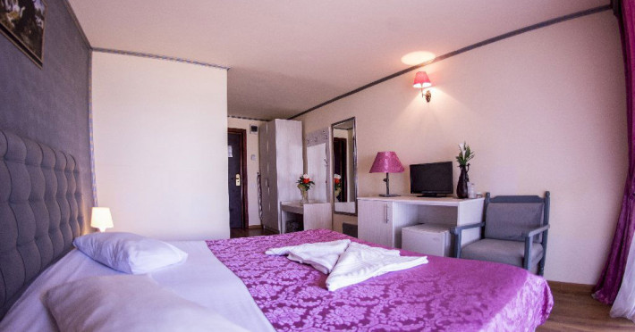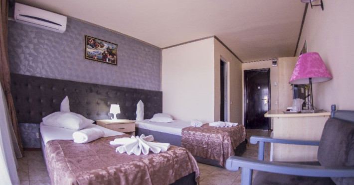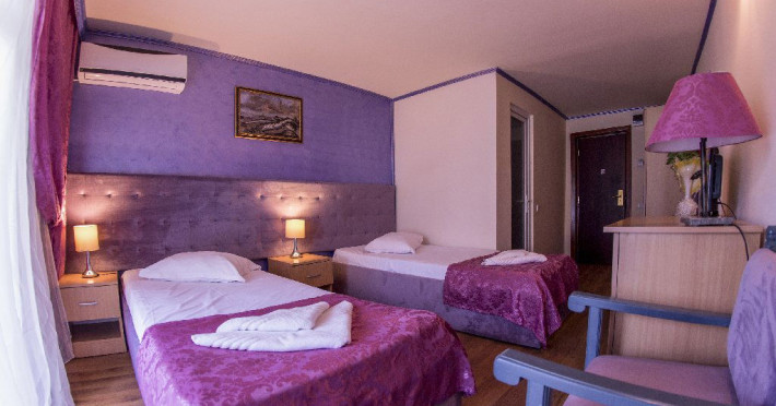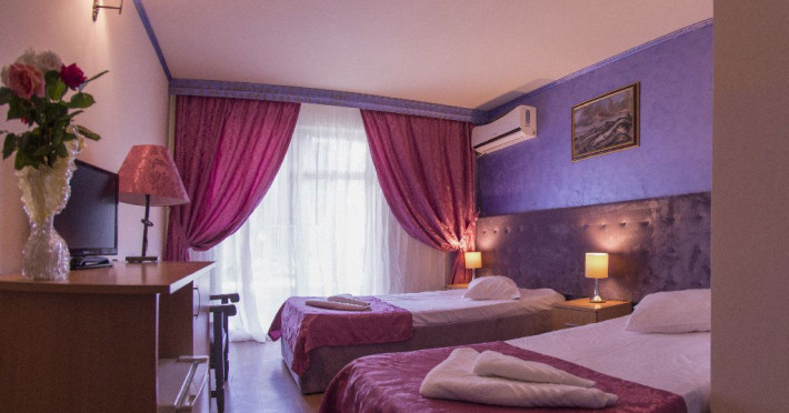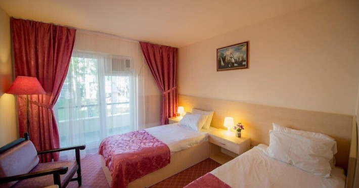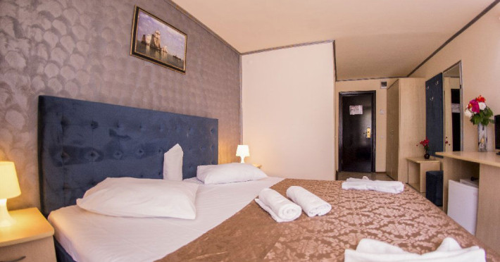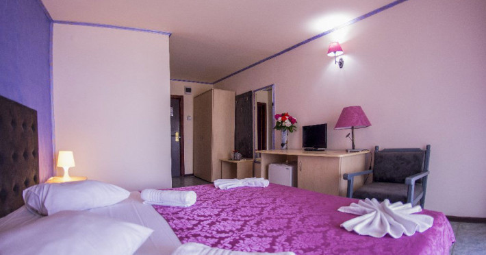 Hotelul Voila este pozitionat in nordul statiunii Mamaia, pe partea Lacului Sutghiol, la 100 m de plaja. Facilitati hotel: 200 de camere, receptie non-stop, restaurant, bar, terasa, gradina, aer conditionat, camera de bagaje, sala de conferinte (cost suplimentar), business centre (cost suplimentar), fax/copiator (cost suplimentar), loc de joaca pentru copii, zona pentru fumatori, camere pentru nefumatori, serviciu transfer aeroport (cost suplimentar), Wi-Fi, parcare gratuita (in limita locurilor disponibile). Facilitati camere: aer conditionat, cablu TV, baie proprie cu dus, minibar, telefon, balcon.