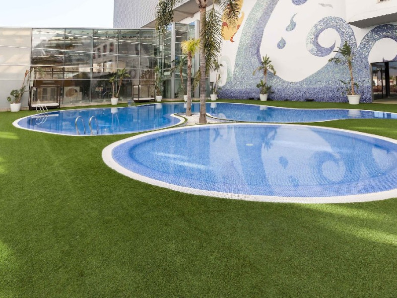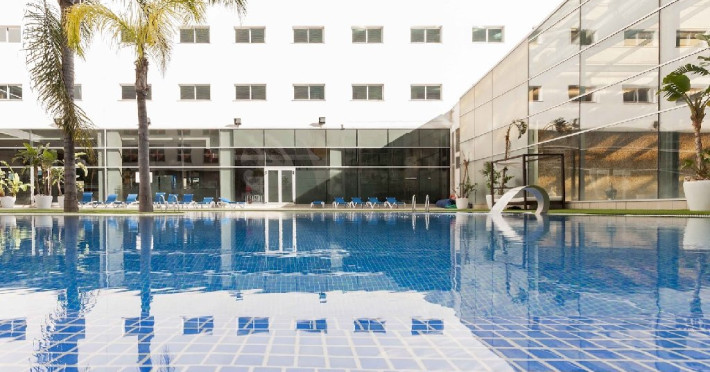 Facilitati HOTEL GANDIA PALACE: Hotelul pune la dispozitia oaspetilor: piscina exterioara cu terasa pentru plaja cu sezlonguri si umbrele, piscina pentru copii, restaurant, bar, cafenea, discoteca, centru Spa cu sauna si servicii de masaj, sala fitness, parcare, Wi-Fi gratuit.