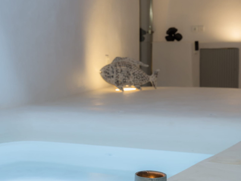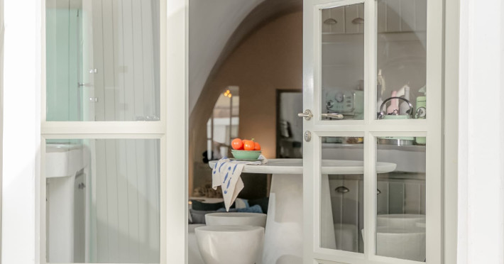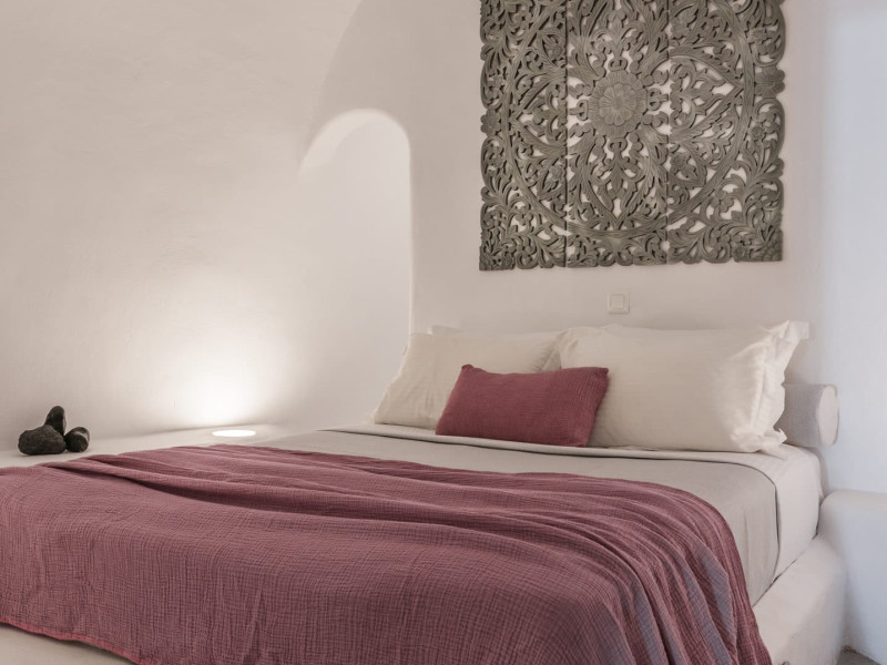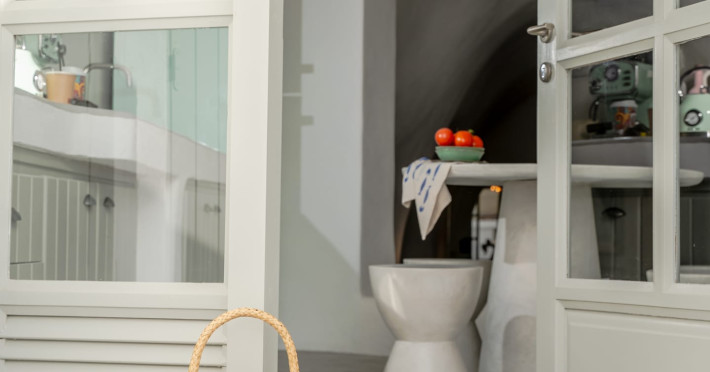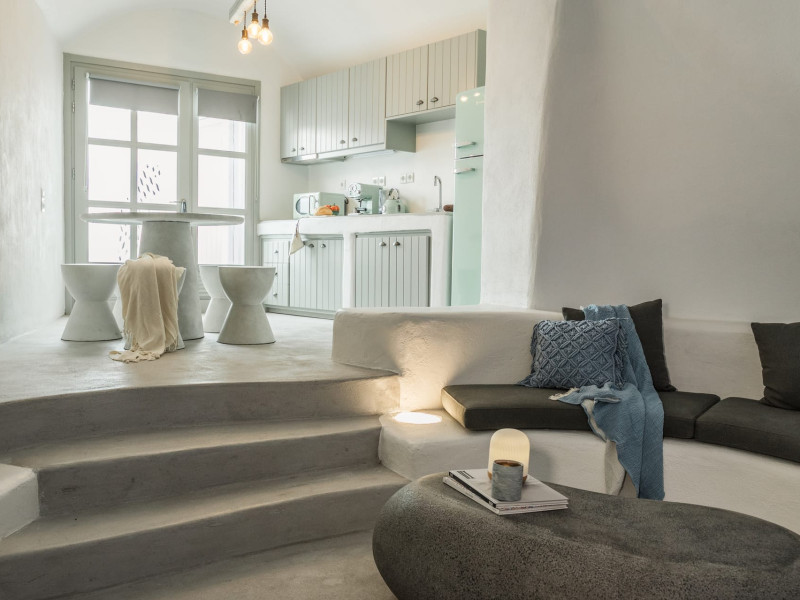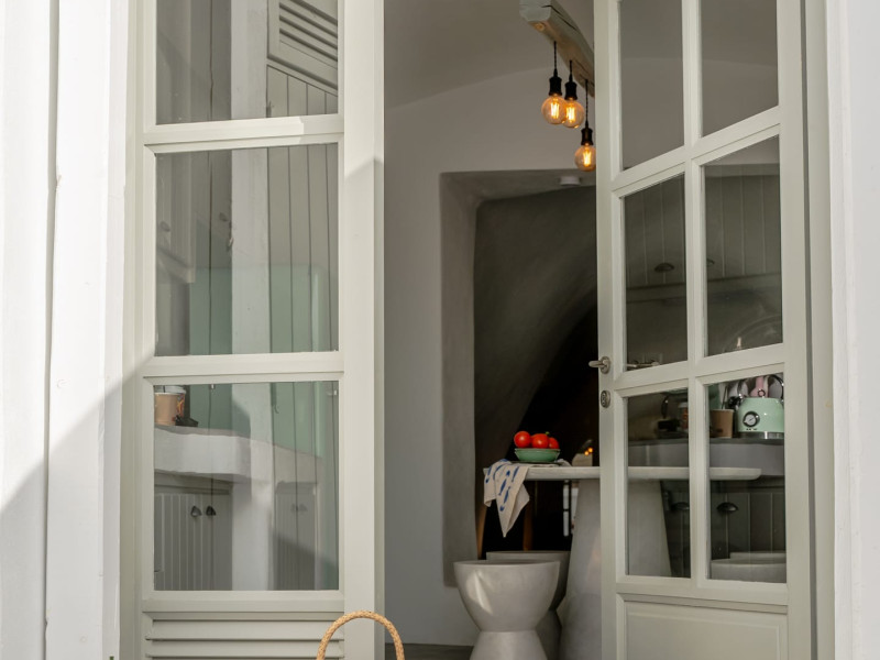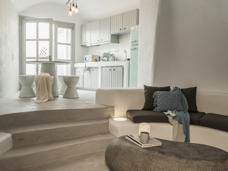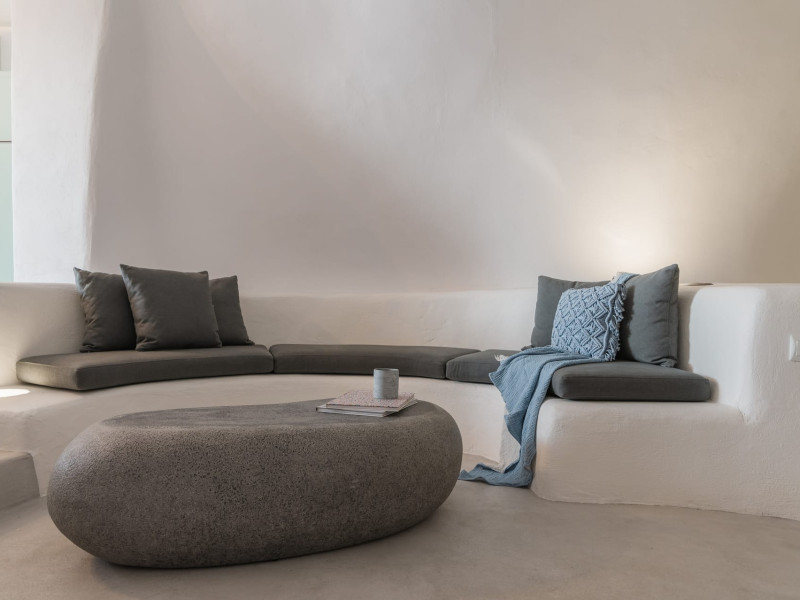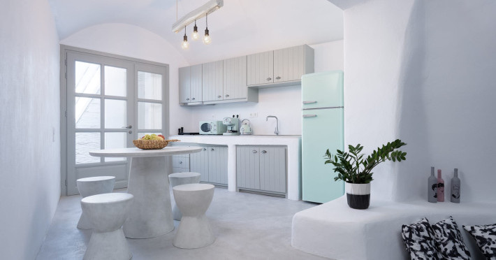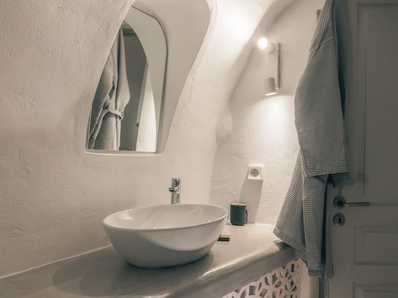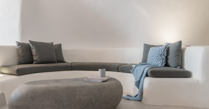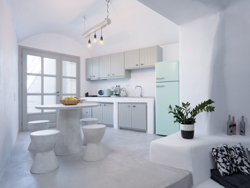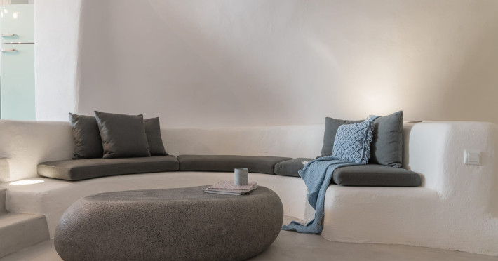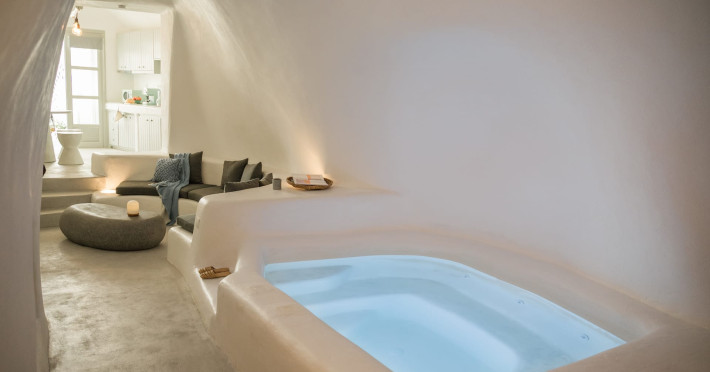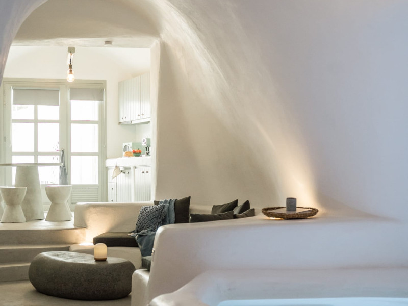 Cave House Villa – A minimal luxury villa nestled in the peaceful village of Megalochori, Santorini. Carved into the volcanic rock and inspired by traditional Cycladic architecture, the villa masterfully blends timeless elements with modern design. It features two king-size bedrooms with orthopedic mattresses, two full bathrooms, a heated jacuzzi, private hammam, mini gym, a fully equipped kitchen, and a cozy lounge area.The spacious veranda and rooftop terrace open up to panoramic views of the caldera, the Aegean Sea, and Santorini’s iconic sunsets. The whitewashed, minimalist palette and curated amenities elevate both the aesthetic and the essence of the experience.Ideal for couples, families, or friends seeking luxury, tranquility, and design in the heart of Santorini. Just a few steps from Megalochori’s charming village square, and only a short drive from Fira, Imerovigli, and renowned local wineries.
