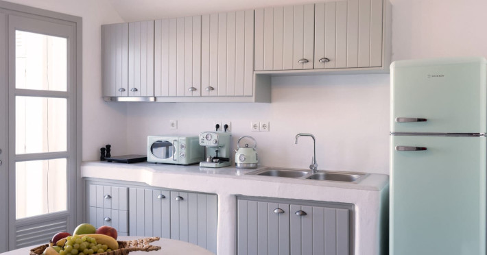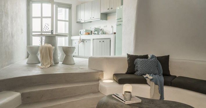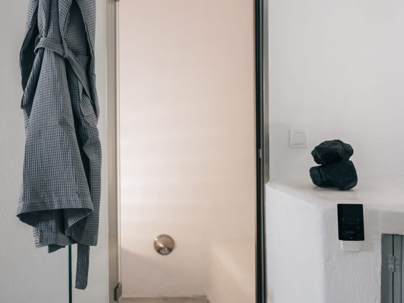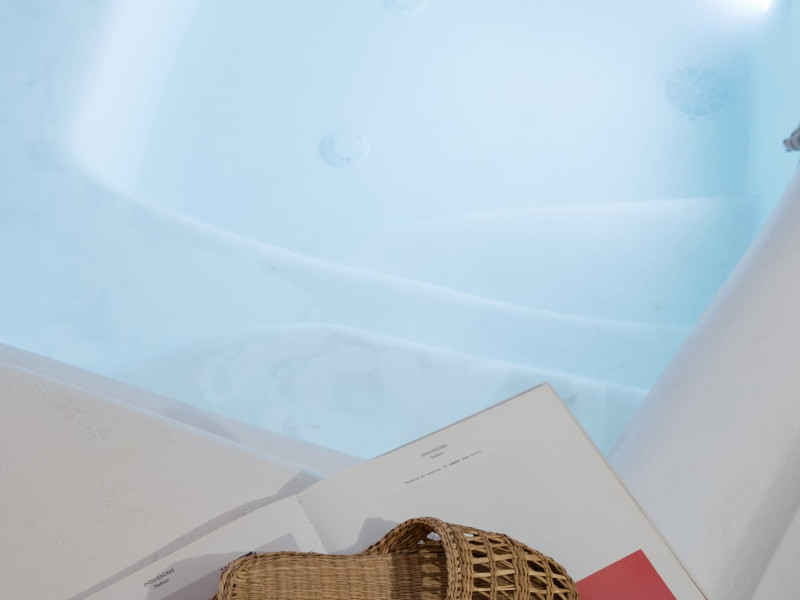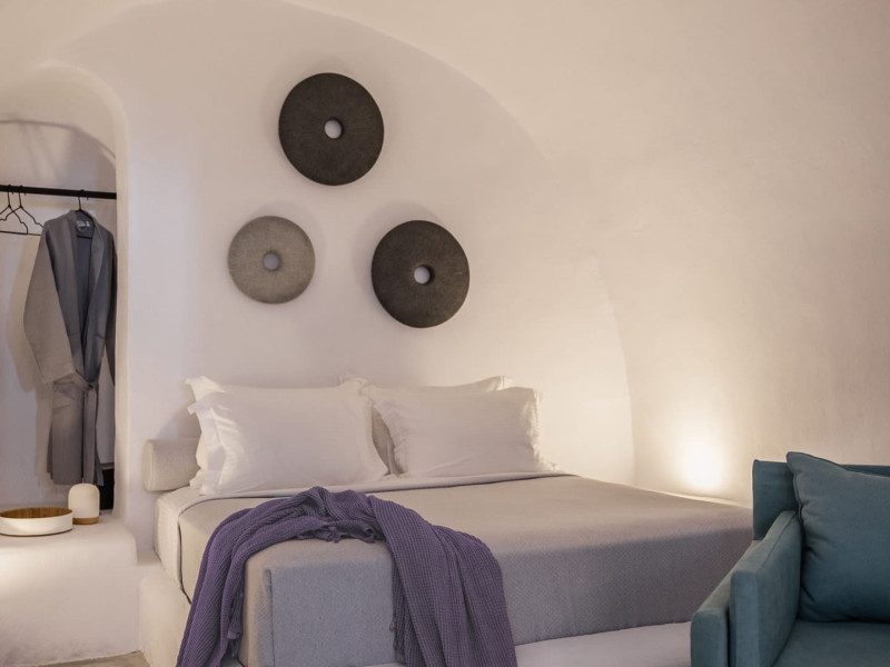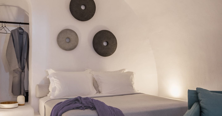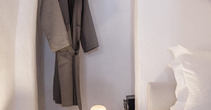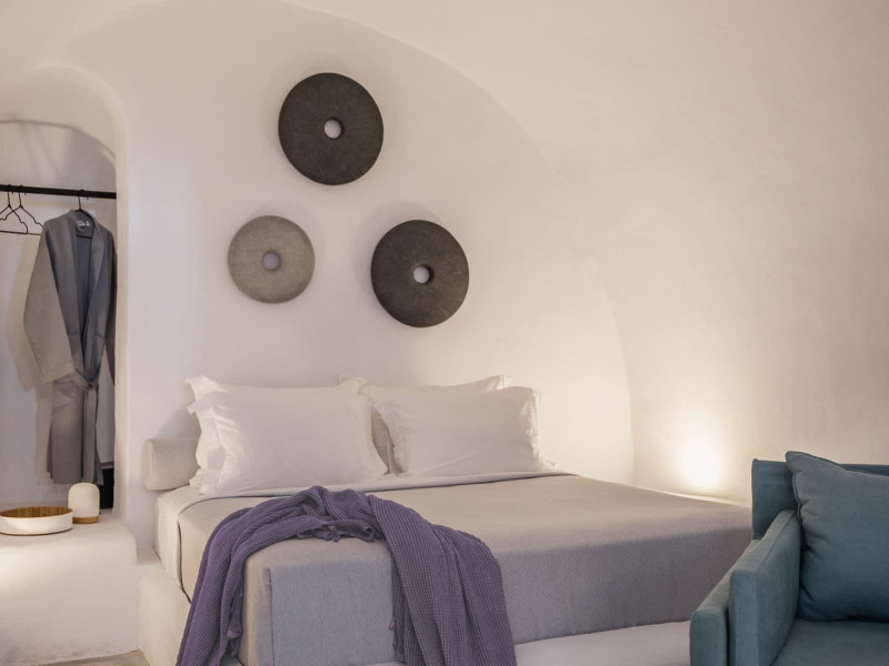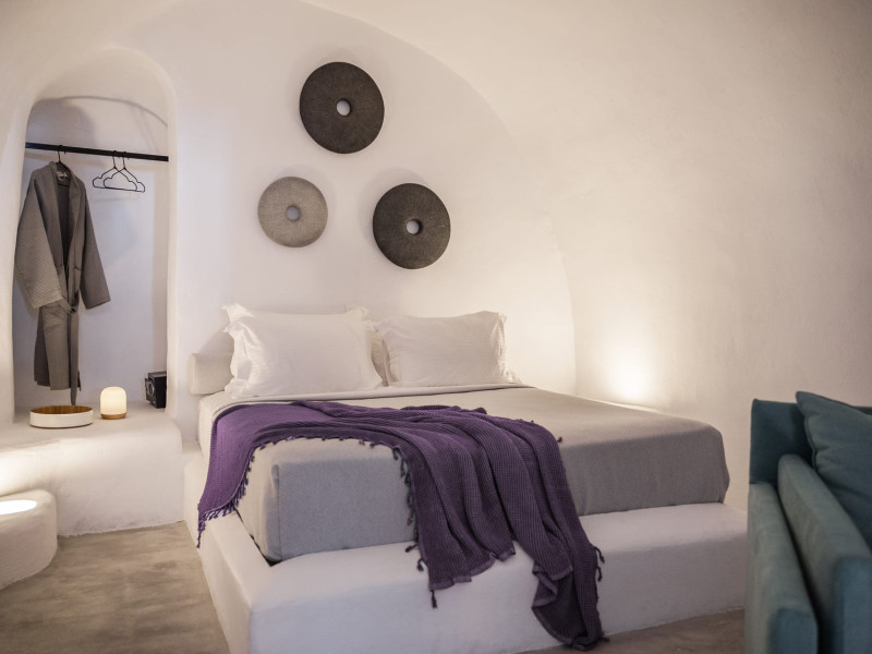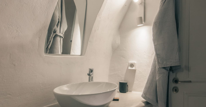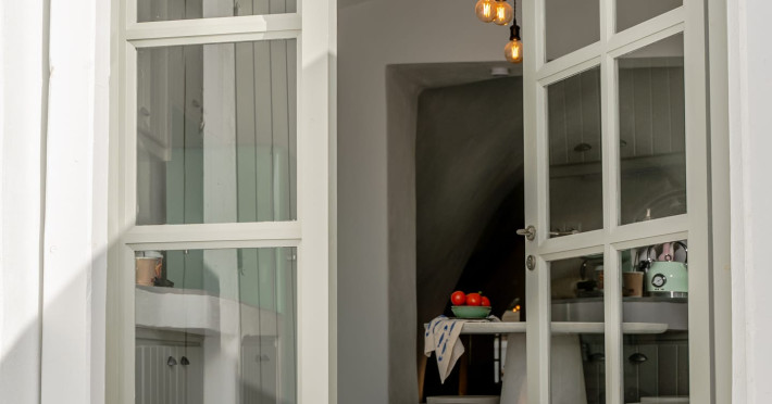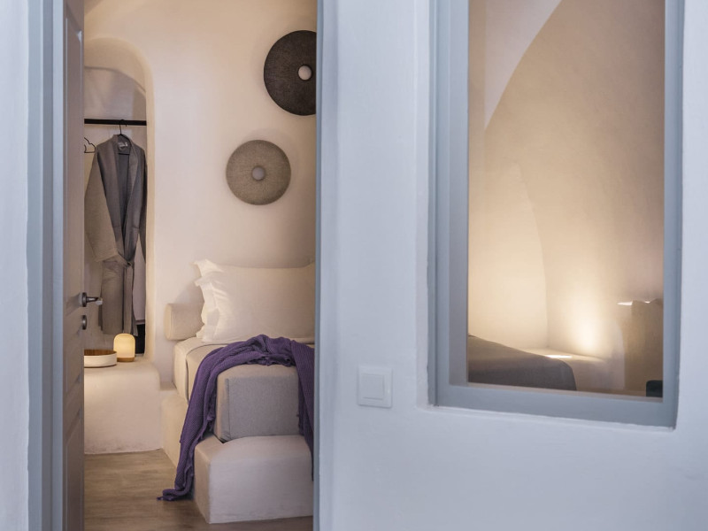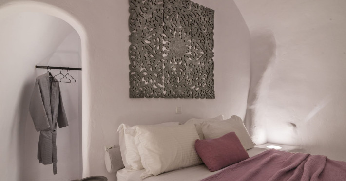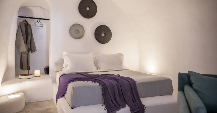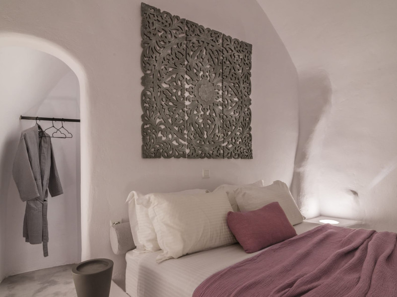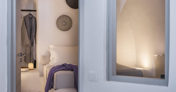 Cave House Villa – A minimal luxury villa nestled in the peaceful village of Megalochori, Santorini. Carved into the volcanic rock and inspired by traditional Cycladic architecture, the villa masterfully blends timeless elements with modern design. It features two king-size bedrooms with orthopedic mattresses, two full bathrooms, a heated jacuzzi, private hammam, mini gym, a fully equipped kitchen, and a cozy lounge area.The spacious veranda and rooftop terrace open up to panoramic views of the caldera, the Aegean Sea, and Santorini’s iconic sunsets. The whitewashed, minimalist palette and curated amenities elevate both the aesthetic and the essence of the experience.Ideal for couples, families, or friends seeking luxury, tranquility, and design in the heart of Santorini. Just a few steps from Megalochori’s charming village square, and only a short drive from Fira, Imerovigli, and renowned local wineries.