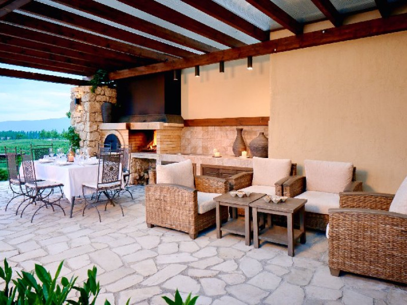 Vederea panoramica de 360 de grade a podgoriilor din jur, nisipurile de pe Melnik si culmile muntilor reprezinta un sfarsit natural al interiorului.